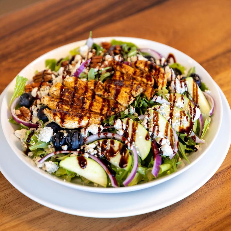 Our dressings include homemade blueberry vinaigrette, ranch, blue cheese, honey mustard, and oil & vinegar. All salads can be prepared gluten friendly and vegetarian • Add Soup to Any Sandwich +$3.95 • Add Protein to Any Salad: Grilled Chicken +$5.00 | Shrimp +$9.95 | Grilled Tuna +$9.95 | Salmon +$9.95 | Sirloin Steak +$9.95